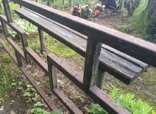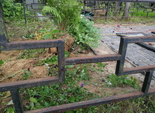 Дополнительно устанавливаем напротив надгробий металлические лавочку и столик, сидение скамьи изготовлено из дерева.
