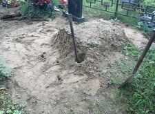 Подготавливаем основание под новые памятники, демонтируем старое надгробье.